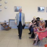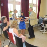 Vor dem Musikprogramm verabschiedete Herr Bradenstahl auf humorvolle Weise auch den Autor dieser Zeilen, zugleich Mathematiklehrer der 08H3. Er rechnete den Schülern vor, welche Lebenszeit Erhard Pohl während seiner 35 Berufsjahre an der H14 vermutlich allein mit Mathematikunterricht verbracht habe. Die Klassensprecher der 08H3 übergaben ein kleines Präsent. Herr Pohl verabschiedete sich mit persönlichen Worten von seinen letzten Schülern.
