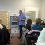 Herr Brandenburg entwickelte zunächst in Grundzügen das Berufsbildungssystem in Deutschland gemäß den Regelungen nach dem Berufsbildungsgesetz und ging anschließend näher auf die Ausbildungsordnung, den Bildungsauftrag der Berufsschule und den Rahmenlehrplan ein. Des Weiteren präsentierte er den Beruf ‚Kaufleute für Spedition und Logistikdienstleistung‘ mit der Stundentafel und den Besonderheiten der Europaklassen wie die Anforderungen an den Englischunterricht, das Auslandspraktikum und den Spanischunterricht. Ferner stellte er den Hamburger Logistik-Bachelor (HLB) vor.
