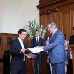 Herr Tews und Herr Schröder überreichten den Absolventen und Absolventinnen (26 der Prüflinge mit der Note „sehr gut“ und 101 Prüflinge mit der Note „gut“) die Ehrenurkunden vom DSLV.